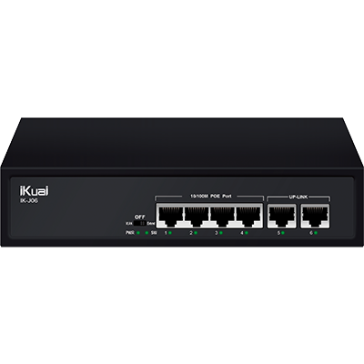 IK-J06是愛快面向中小型企業及安防場景推出的一款非網管型百兆POE交換機,旨在為視頻監控、中小企業組網等應用場景提供簡單易用且經濟的網絡接入,IK-J06整機提供4個10/100M POE以太網端口和2個10/100M上聯以太網端口,全端口采用線速轉發設計,保證所有端口無阻塞進行報文轉發,同時IK-J06支持VLAN隔離,可有效避免由廣播?暴引起的網絡卡頓問題,是您構建經濟高速網絡的理想選擇。